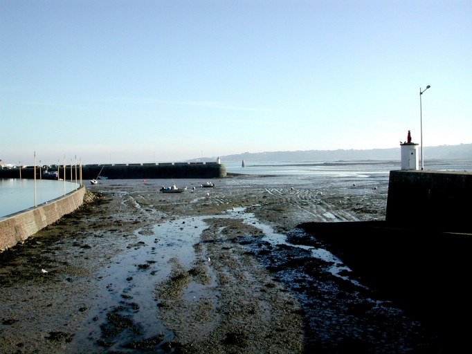 Vue générale des anciens ouvrages portuaires du 19ème siècle, à marée basse : la jetée du Linkin et la cale de l'Eperon (Collection particulière)Immatriculation