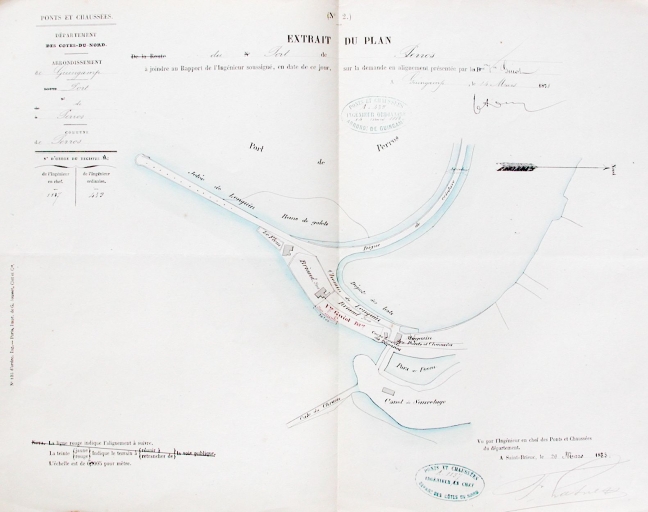 Plan du port de Perros-Guirec : emplacement du magasin des Ponts-et-Chaussées en 1883 (AD 22)Immatriculation