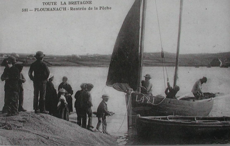 Débarquement de la pêche de l'Augustine (LA 421) de Louis Saleun à la cale Padel (collection particulière)Immatriculation