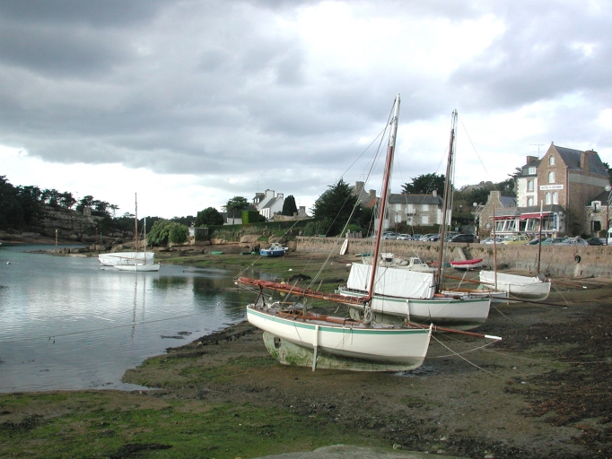 Les murs de quais délimitant la grève et l'échouage des bateaux sur la partie sud-est du port de Ploumanac'hImmatriculation