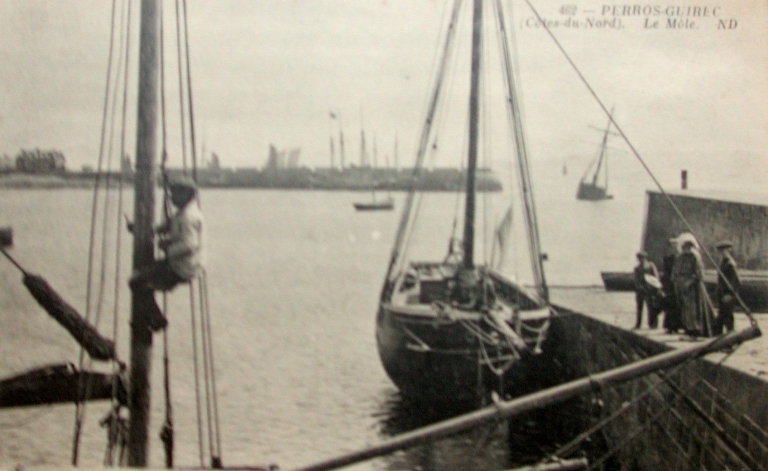 Carte postale : sloop borneur en escale à la cale Bitousse, 1er quart 20ème siècle (collection particulière)Immatriculation