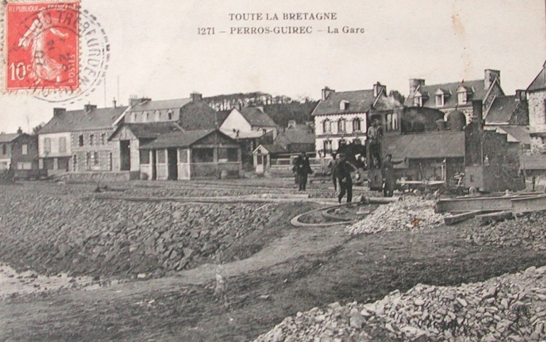 Carte postale : la gare en construction (AD 22)Immatriculation