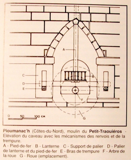 Schéma : Elévation du caveau avec les mécanismes de renvoi et de la trempure (Corinne Mondin)Immatriculation