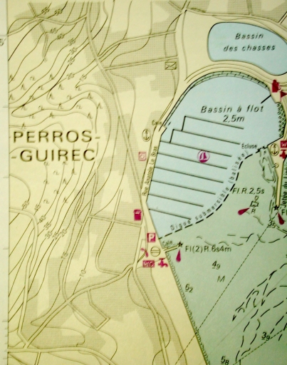 Extrait carte marine du port de Perros-Guirec aujourd'hui : le bassin de chasse et le bassin à flot (SHOM, DDE 22)Immatriculation