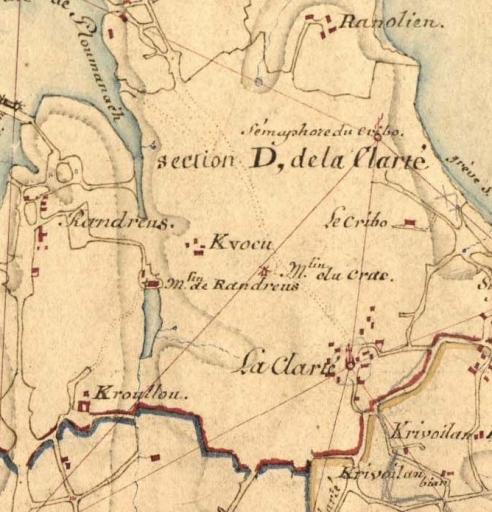 Extrait du cadastre de 1819 : le moulin du Crac'h à La Clarté (section D)Immatriculation