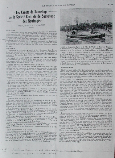 Présentation des canots de sauvetage du type S 18 et S 19 dans la revue Le modèle réduit, 1951 (collection particulière)Immatriculation