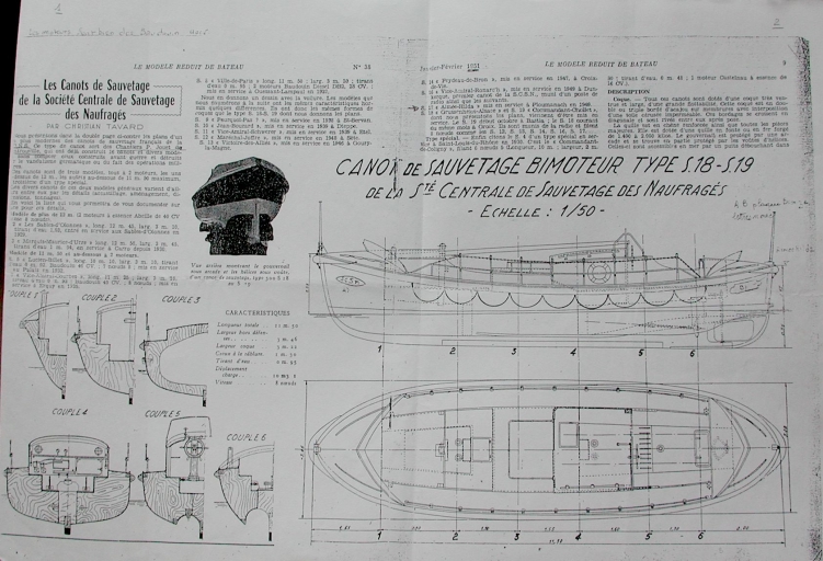 Présentation générale des canots de sauvetage du type S 18 et S 19 dans la revue Le modèle réduit, 1951 (collection particulière)Immatriculation