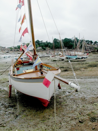 Vue des formes avant du Gabier : remarquer la jolie tonture et le demi-pontage avantImmatriculation