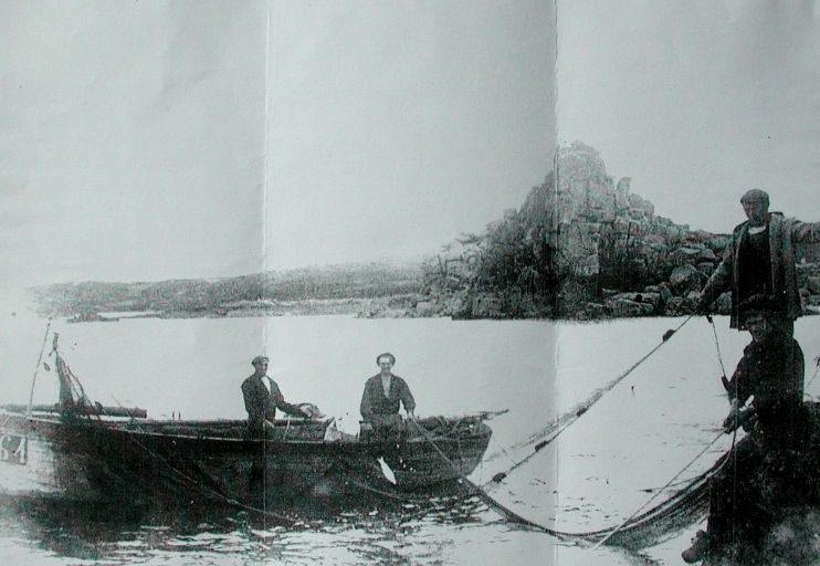 Vue générale d'un bateau de Plouguerneau en situation de pêche à l'attrappe sous le Squewel vers 1908-1910, équipage : la famille Manac'h et Nikol (collection particulière)Immatriculation