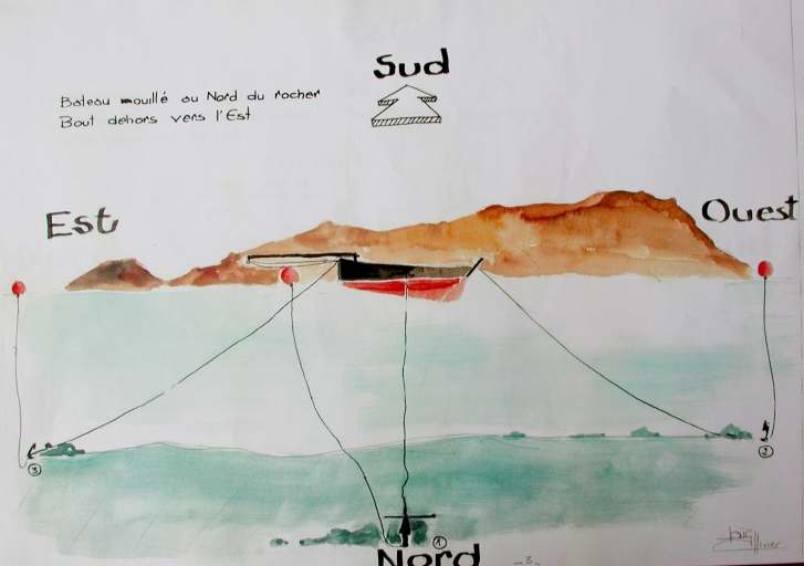 Dessin n°2 représentant une scène de pêche à l'attrappe selon les conditions de vent (Loïc Ollivier)Immatriculation