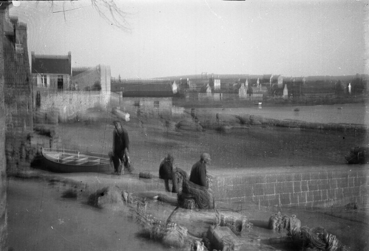 Le quai de Ty Ruz vers 1920, en arrière plan la cale Padel et le vivier (AD 22)Immatriculation