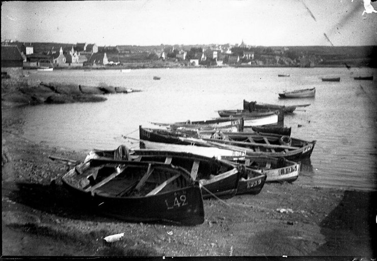 Canots échoués au port aux canots, entre Ty Ruz et la cale Padel, vers 1920 (AD 22)Immatriculation