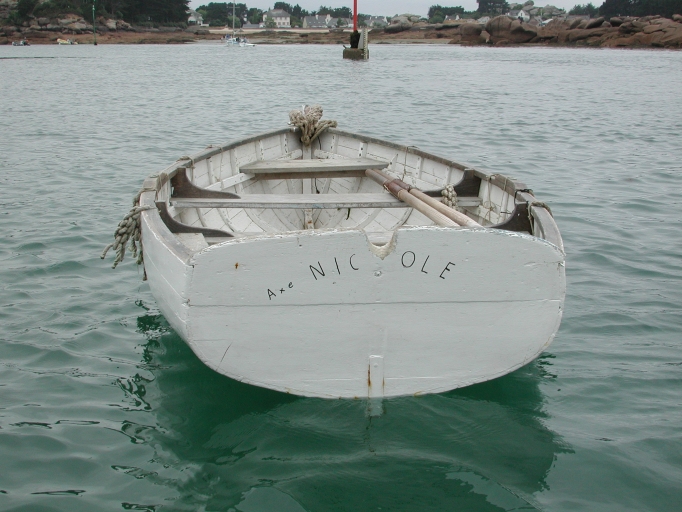 Canot annexe de la Nicole : belle construction en membrures en acacia ployées, rivées cuivre, sur bordés en acajou (canot très vieux daté de 1920)Immatriculation