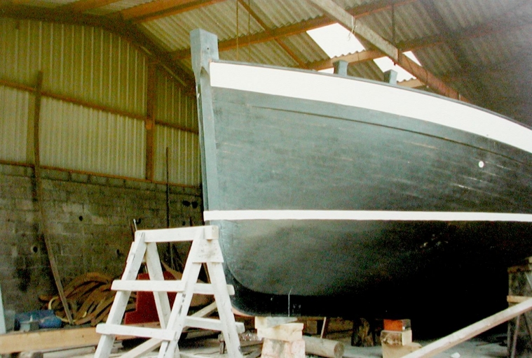 Vue de l'étrave et du brion profond au chantier Clochet de Plouguiel (collection particulière)Immatriculation
