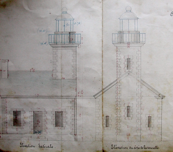 Plan, élévation de la tourelle en projet, 1857 : élévation latérale et de côté (AD 22)Immatriculation