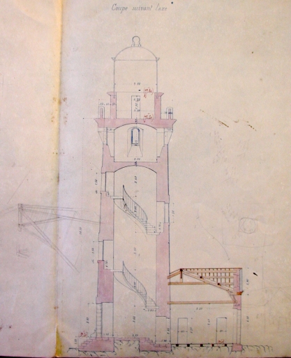 Plan du phare et coupe de la tour, 1884 (AD 22)Immatriculation
