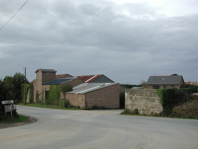 Vue d'ensemble des anciens bâtiments de la Coopérative, avec la réserve d'eau pour alimenter les sciesImmatriculation