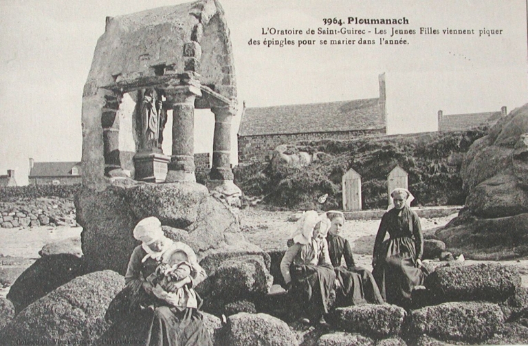 Vue de l'oratoire Saint-Guirec au début du 20ème siècle avec les jeunes filles à marier (collection particulière)Immatriculation