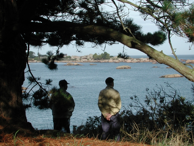 Les deux anciens marins Pierre Le Gaouyat et Marcel Briand devant le chenal d'entrée de Ploumanac'h, témoignent de la toponymie maritime localeImmatriculation