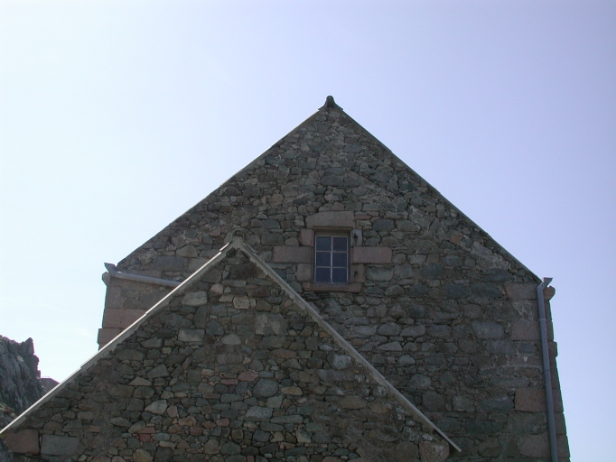 Vue des deux pignons est accolés : remarquer la modification de la toiture l'ouverture dans le pignon du fort avec ses encadrement en pierres de taille chanfreinéesImmatriculation