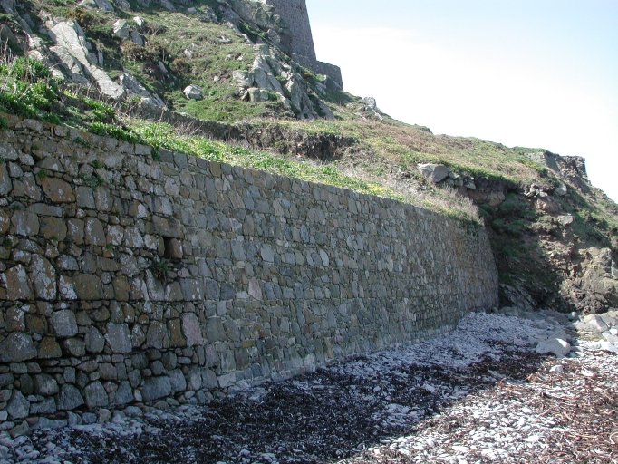 Vue du mur de soutènement et de défense littorale le long du chemin de ronde à l'ouest de la caserneImmatriculation