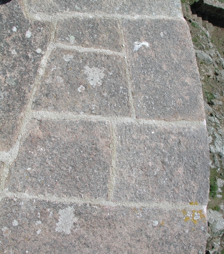 Détail du parapet de la terrasse : agencement des pierres du couronnementImmatriculation