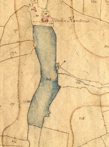 Extrait du cadastre de 1819 : le moulin de Randreux et son bief (AD 22)Immatriculation