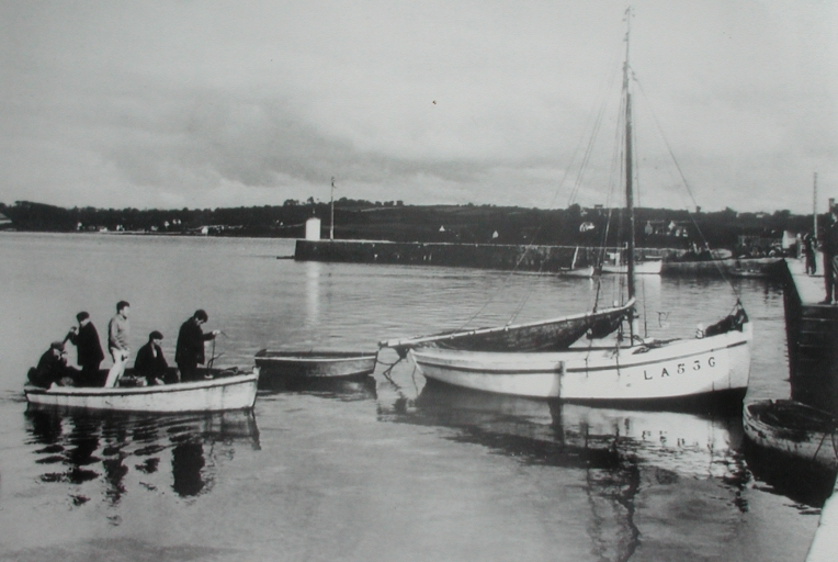 Le Petit Louis de retour des Sept-Îles après la destruction du phare, 1946-47 : à bord Jean Lissilour, André Le Vot et Théodore Rémond à bord du canotte Pierre Floc'h (collection particulière)Immatriculation