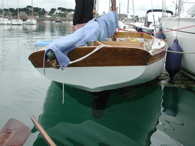 Le Dixi à flot : vue de l'élégant tableau arrière en forme de cœurImmatriculation