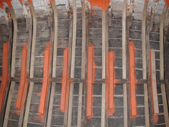 Varangues et membrures vissées sur les bordéesImmatriculation