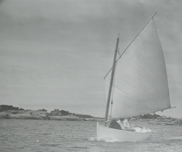 Vue du Koroï en régate vers 1980, sous misaine bômée (collection particulière)Immatriculation