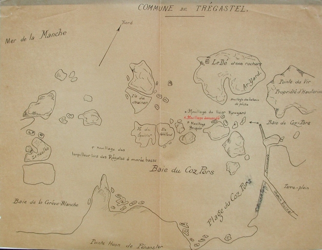 Plan de la baie de Coz Pors en 1911 : tponymie des îlots (AD 22)Immatriculation