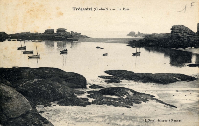 La baie de Coz Pors ouverte au nord avec quelques bateaux de pêche au mouillage, avant 1912 (collection particulière)Immatriculation