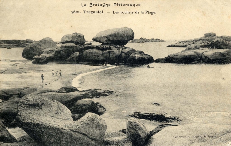 La plage de Coz Pors des touristes et des pêcheurs en morte-eau : pratique des lignes de fond et des filets de barrage (collection particulière)Immatriculation