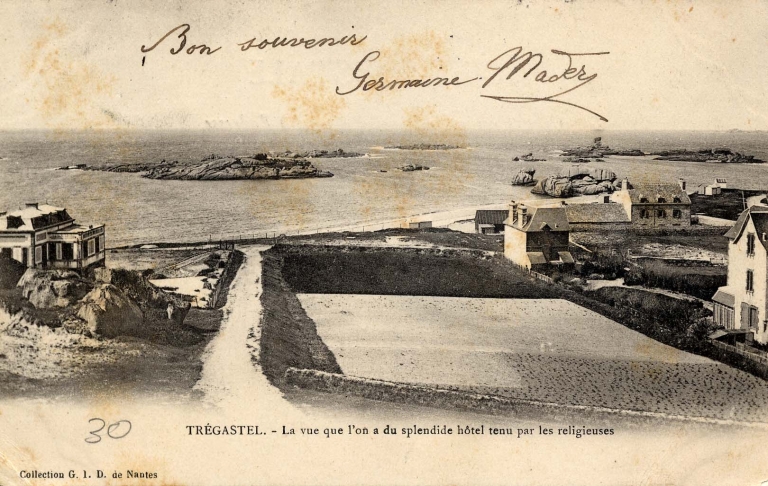 Le paysage maritime et en arrière plan, les terrains encore cultivés entre les dunes et les premières constructions balnéaires (collection particulière)Immatriculation