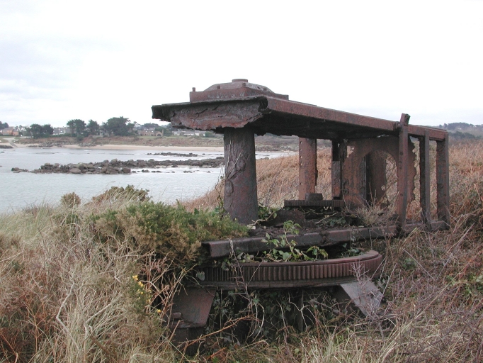 Ancien affût, support de mitrailleuse (1939-45) réutilisé par les carriers comme appareil de levage sur le site de BringuillerImmatriculation