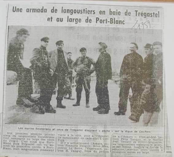 Extrait de journal en 1959 : l'arrivée des langoustiers de Moguériec à Trégastel (collection particulière)Immatriculation