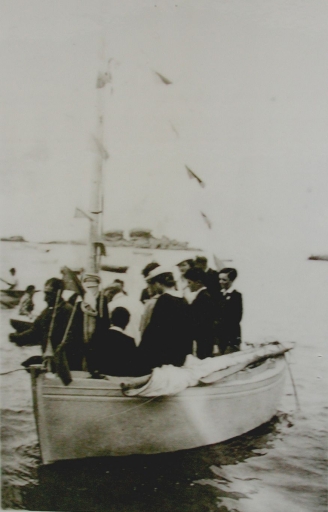 Baptême du bateau de Job Bonny, 2ème quart 20ème siècle (collection particulière)Immatriculation
