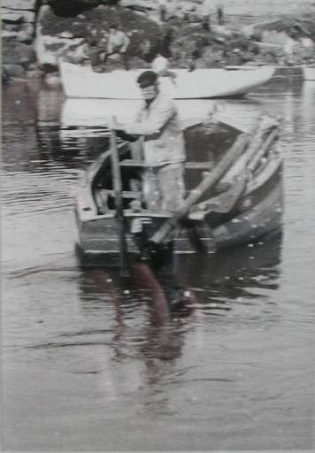 Louis Saleün rentrant au port de Ploumanac'h à la godille sur un canot gréé au tiers, 2ème quart 20ème siècle (collection particulière)Immatriculation