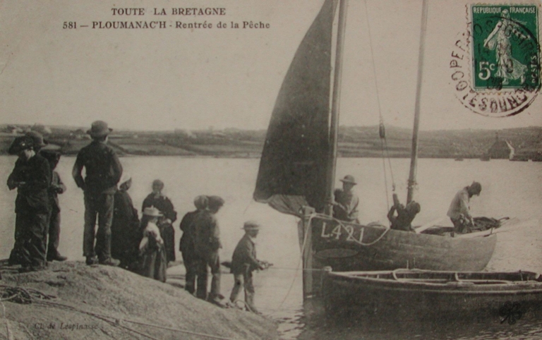Le bateau de pêche Augustine de Louis Saleun, vendu à Ploumanac'h, au début du 20ème siècle, à la cale de Pen Crec'h (collection particulière)Immatriculation