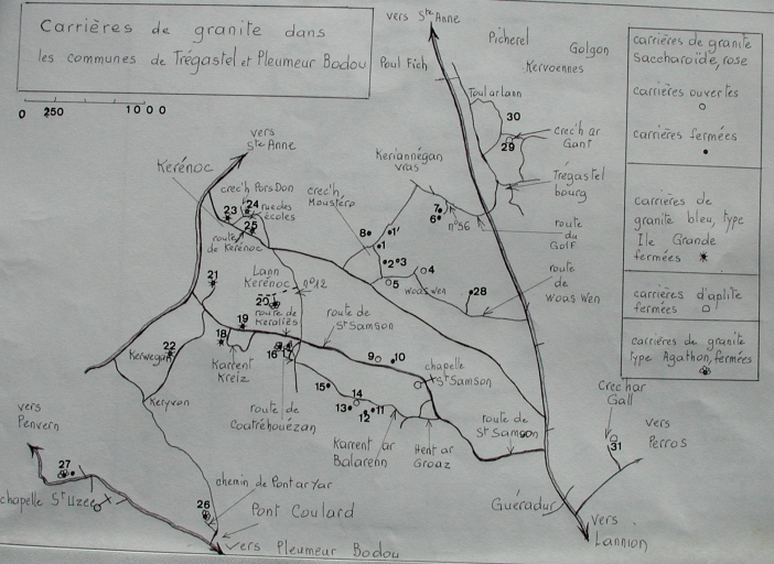 Anciennes carrières de granite dans les communes de Trégastel et de Pleumeur-Bodou : Toul ar Lan, Crec'h ar gant, Le Clavaire et Woas Wen sur Trégastel (UTL lannion)Immatriculation