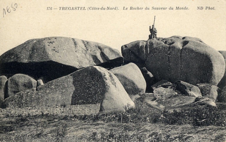 Le chaos granitique a commencé d'être aménagé en habitation troglodyte : remarquer l'escalier d'entrée (collection particulière)Immatriculation