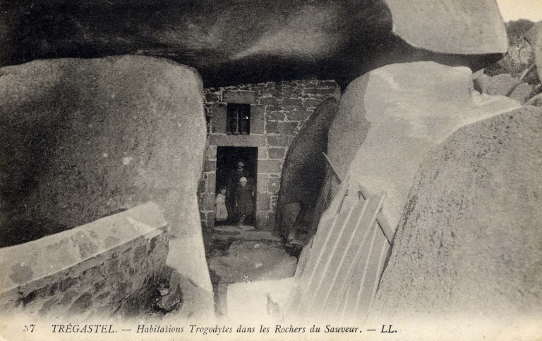 L'aménagement extérieur de l'abri sous roches : remarquer le mur construit en moellons (collection particulière)Immatriculation