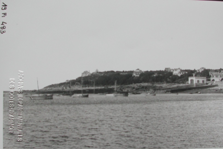 Bateaux de pêche au mouillage devant la grande cale et l'abri de sauvetage, 2ème quart 20e siècle (AD 22, Lacombe)Immatriculation