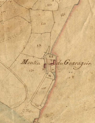 Détail de l'extrait du plan cadastral de 1819 : le moulin de de Goaragoir (AD 22)Immatriculation