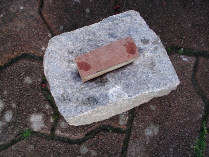 Le coin en bois est utilisé pour faire des trous de 2, 5 cm dans le bloc de pierre immergé dans immergéImmatriculation