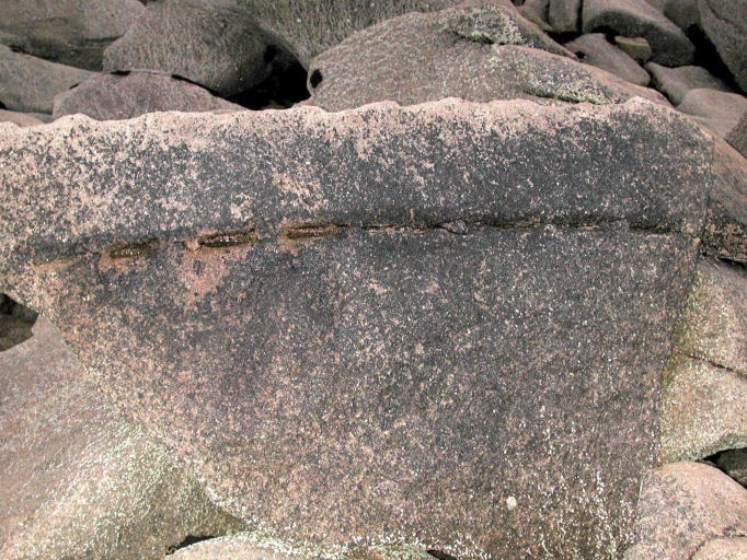 Traces de trous trapézoïdaux réalisés pour des coins en bois autour de l'Île Petite Fougère (1)Immatriculation