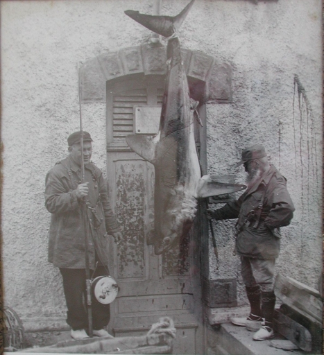 Les pêcheurs plaisanciers Perrot et Rousseau devant leur prise : un requin (collection particulière)Immatriculation
