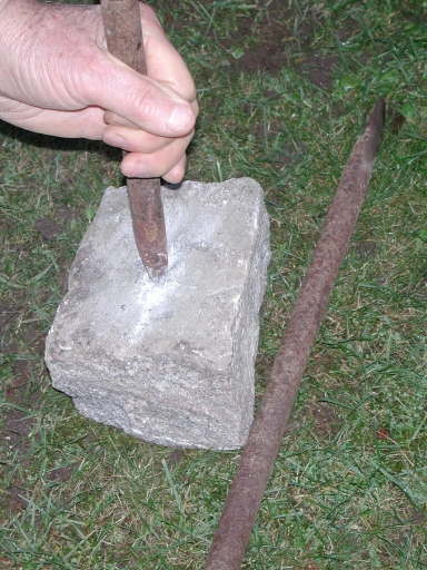 Utilisation du burin ou du ciseau à l'aide de la masse pour faire le trou de mine, pour rayerImmatriculation