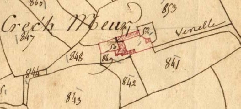 Détail : extrait du cadastre de 1819, B 60-56, la ferme de Crec'h Meur (AD 22)Immatriculation